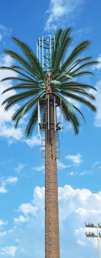 G-ENVIRO’s Palm Tree is a high-performance decorative solution specially designed to reduce the visual impact on the environment. Our PT provides a high range of flexibility in heights, specifications and accessory components. G-ENVIRO produces three types of Palm tree structures: Single PT, Sharable PT, and Rapid Deployment PT. Foliage Characteristics: G-ENVIRO utilizes premium materials in PT foliage. Our PT can withstand severe weather conditions and is well-known for its natural look. The Number of foliage branches can be modified according to customer’s requirements.